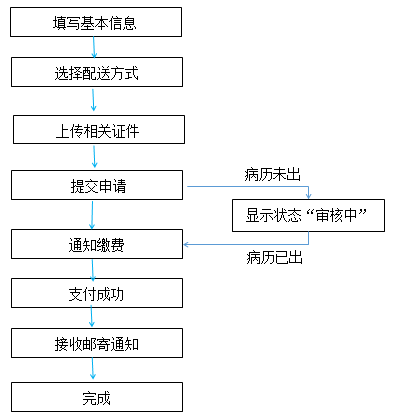 (2)病历邮寄费用:根据EMS快递收费标准,省内:13元(包信封1元),省外:21元,新疆、西藏:25元。