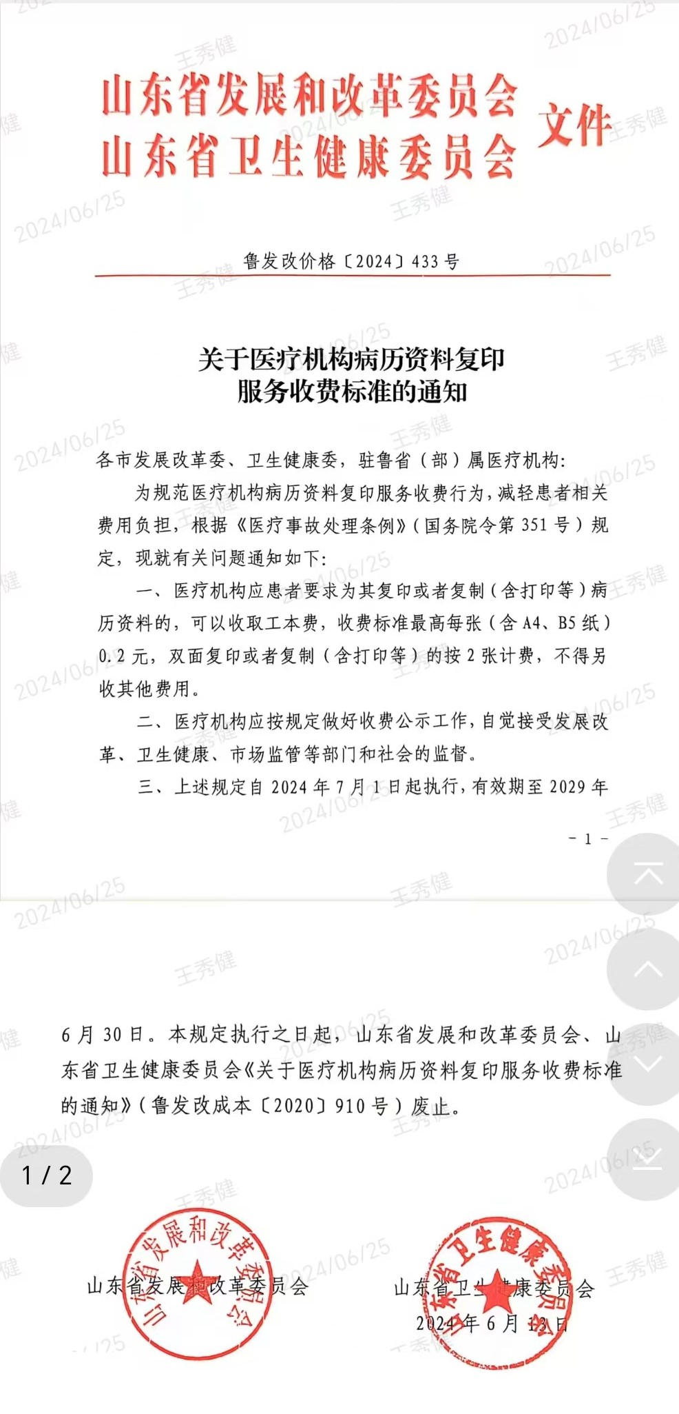 索引号 1237010049300077XA/2025-07412 发文日期 2026-04-02 发文单位 济南市第五人民医院 济南市第五人民医院病历复印收费说明 发布日期:2026-04-02 10:22 信息来源:济南市第五人民医院 字体:【 默认 大 超大 】 收费标准(1)病历复印费用:依据鲁发改价格〔2024〕433号文件的规定,复印病历费用0.2元/页。采用短信通知、多退少补的缴费形式。(2)病历邮寄费用:根据EMS快递收费标准,省内:13元(包信封1元),省外:21元,新疆、西藏:25元。附件:关于医疗机构病历资料复印服务收费标准的通知.pdf 【打印本页】 【关闭窗口】