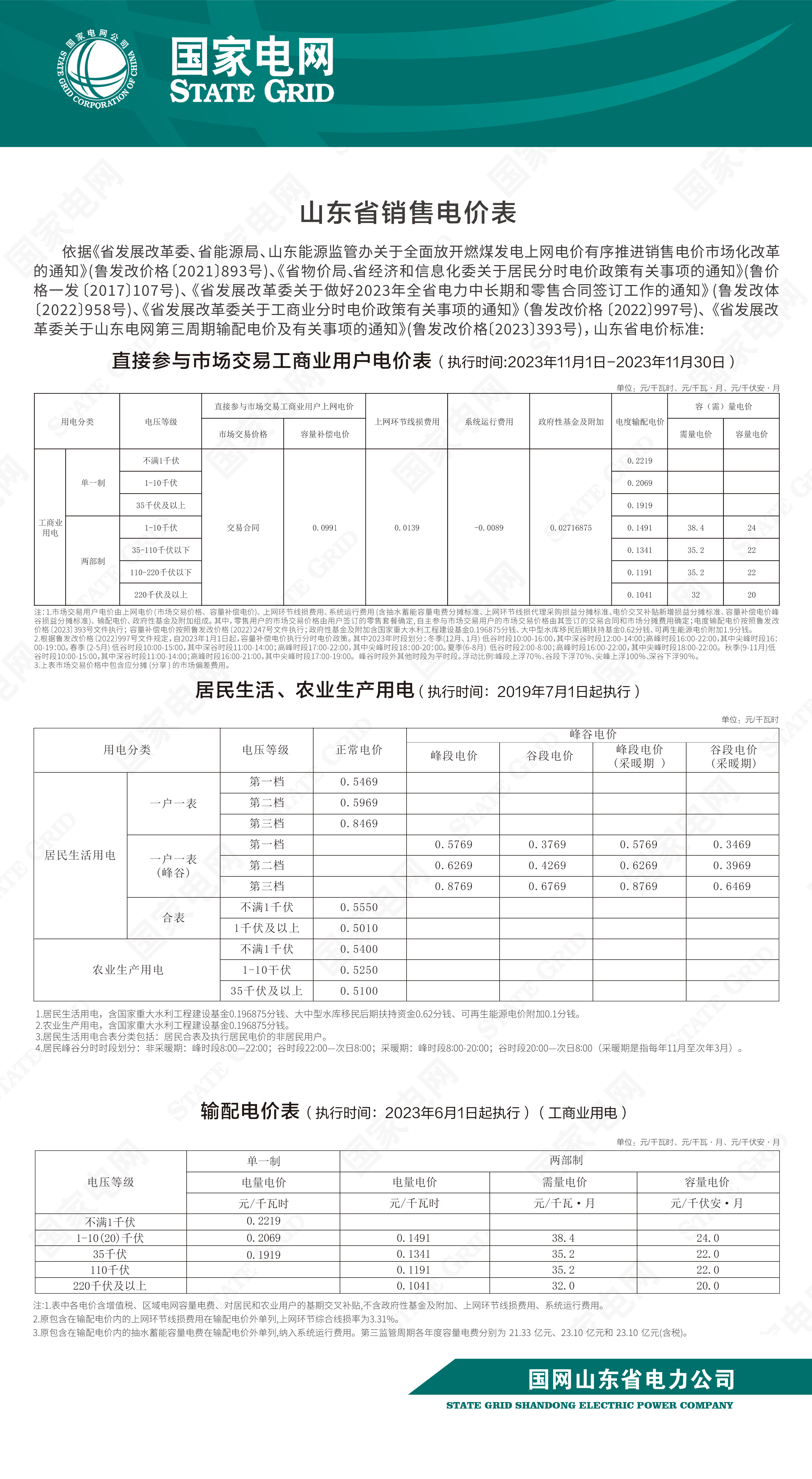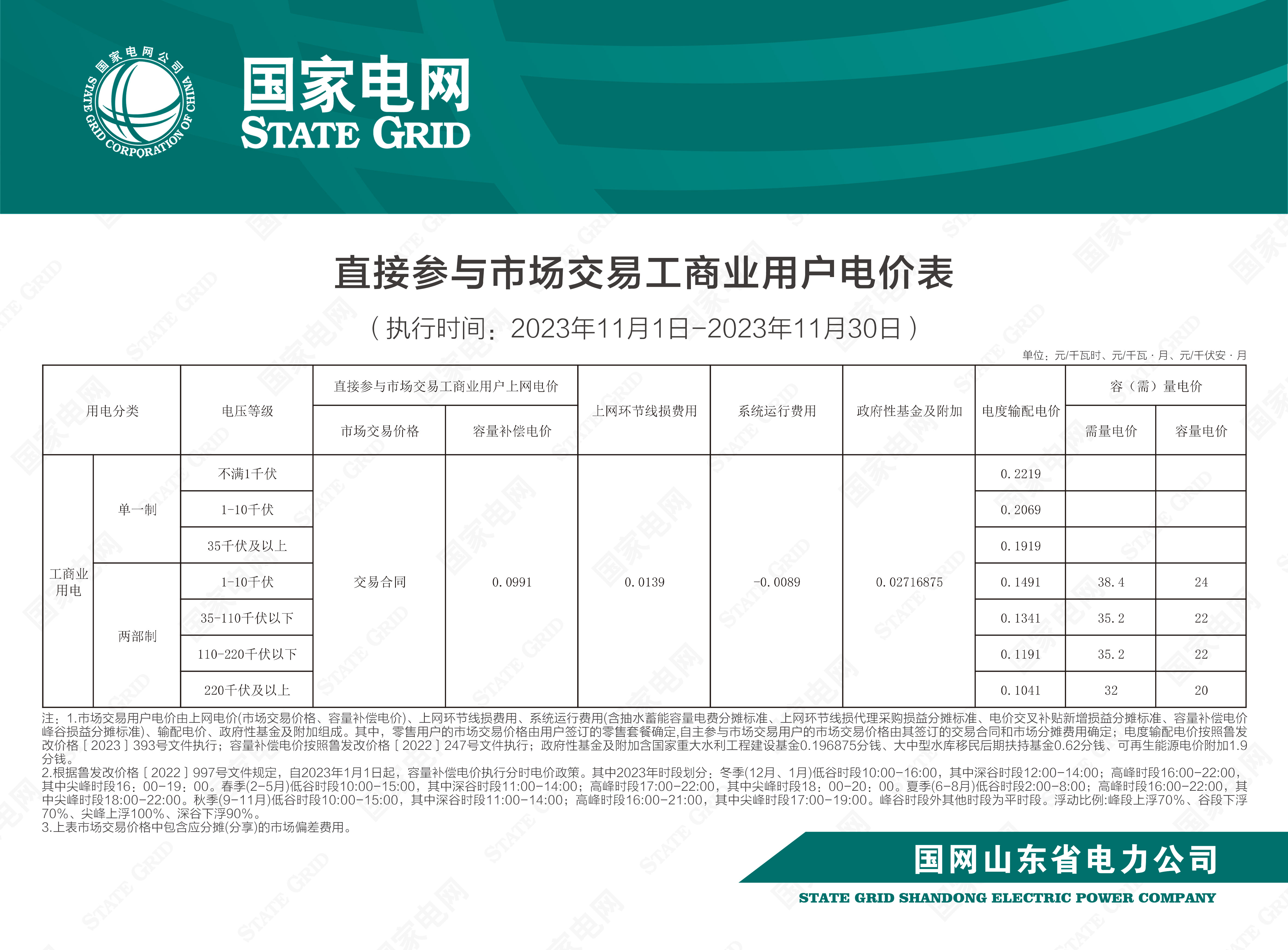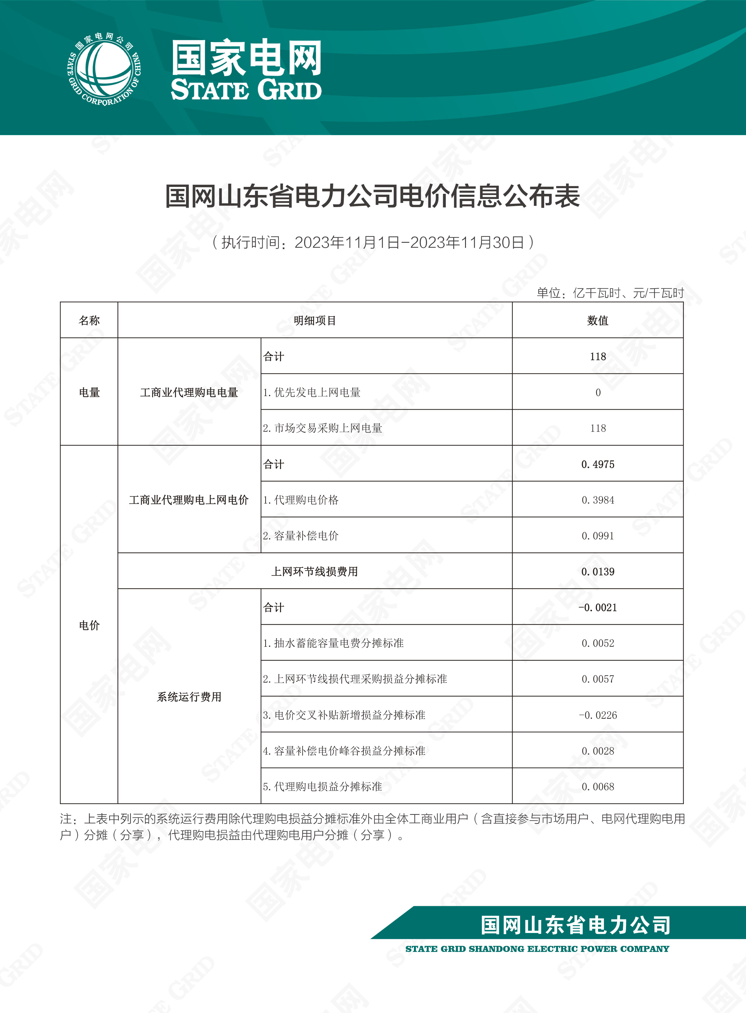 索引号 91370100MA93P7BP6R/2023-09477 发文日期 2023-11-01 发文单位 济南供电公司 供电企业向各类用户计收电费执行的政策文件-国网山东省电力公司代理购电价格表(2023年11月1日-2023年11月30日) 发布日期:2023-11-01 16:16 信息来源:济南供电公司 字体:【 默认 大 超大 】 【打印本页】 【关闭窗口】