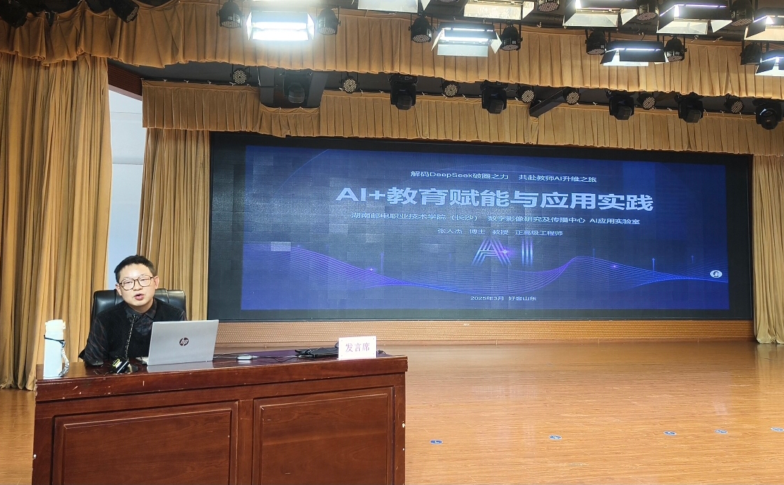 湖南邮电职业技术学院网络信息中心主任张人杰以《解码Deepseek破圈之力,共赴AI升级之旅》为题,深度解析大模型技术在教育领域的创新应用。他从Deepseek教育场景适配、校企协同研发等维度,剖析AI技术如何赋能教育数字化转型,并结合智慧校园建设实践,探讨高职院校在AI人才培养、课程体系重构中的突破路径,助力职业教育与前沿科技同频共振。