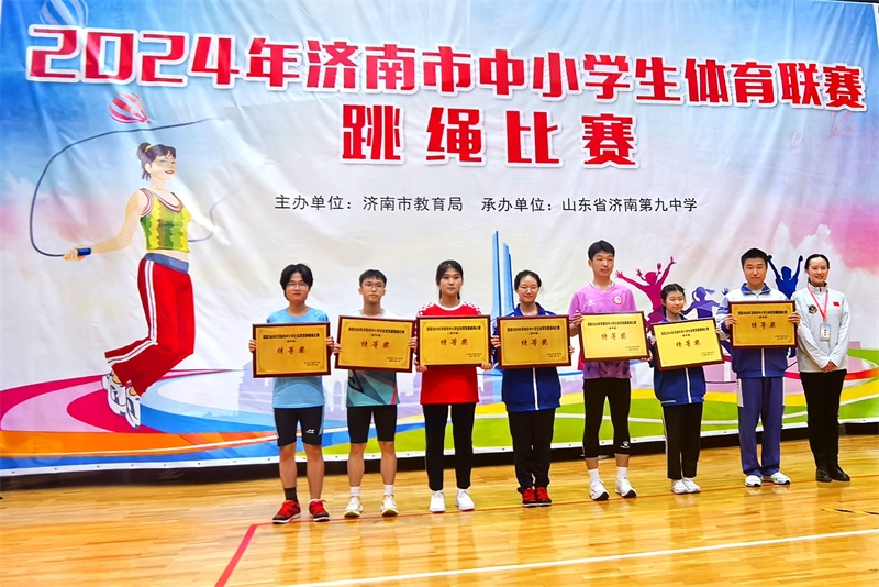2024年济南市中小学生体育联赛跳绳比赛于11月10号在济南九中隆重举行。莱芜一中代表队以优异的比赛成绩荣获“特等奖”!
