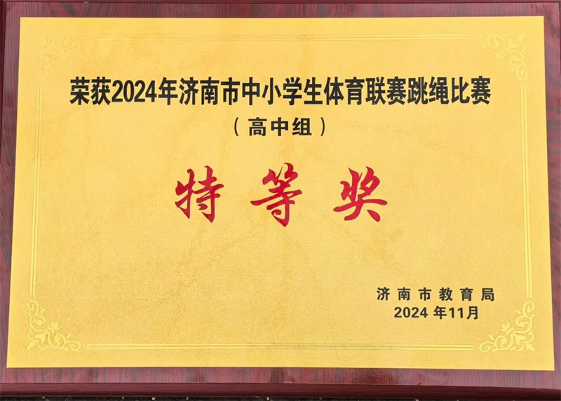 济南市莱芜第一中学荣获2024年济南市中小学生体育联赛跳绳比赛(高中组)特等奖公示