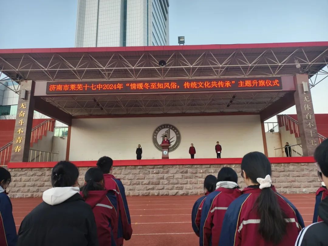 冬至将至,春归有期。12月16日,济南市莱芜十七中举行“情暖冬至知风俗传统文化共传承”主题升旗仪式。